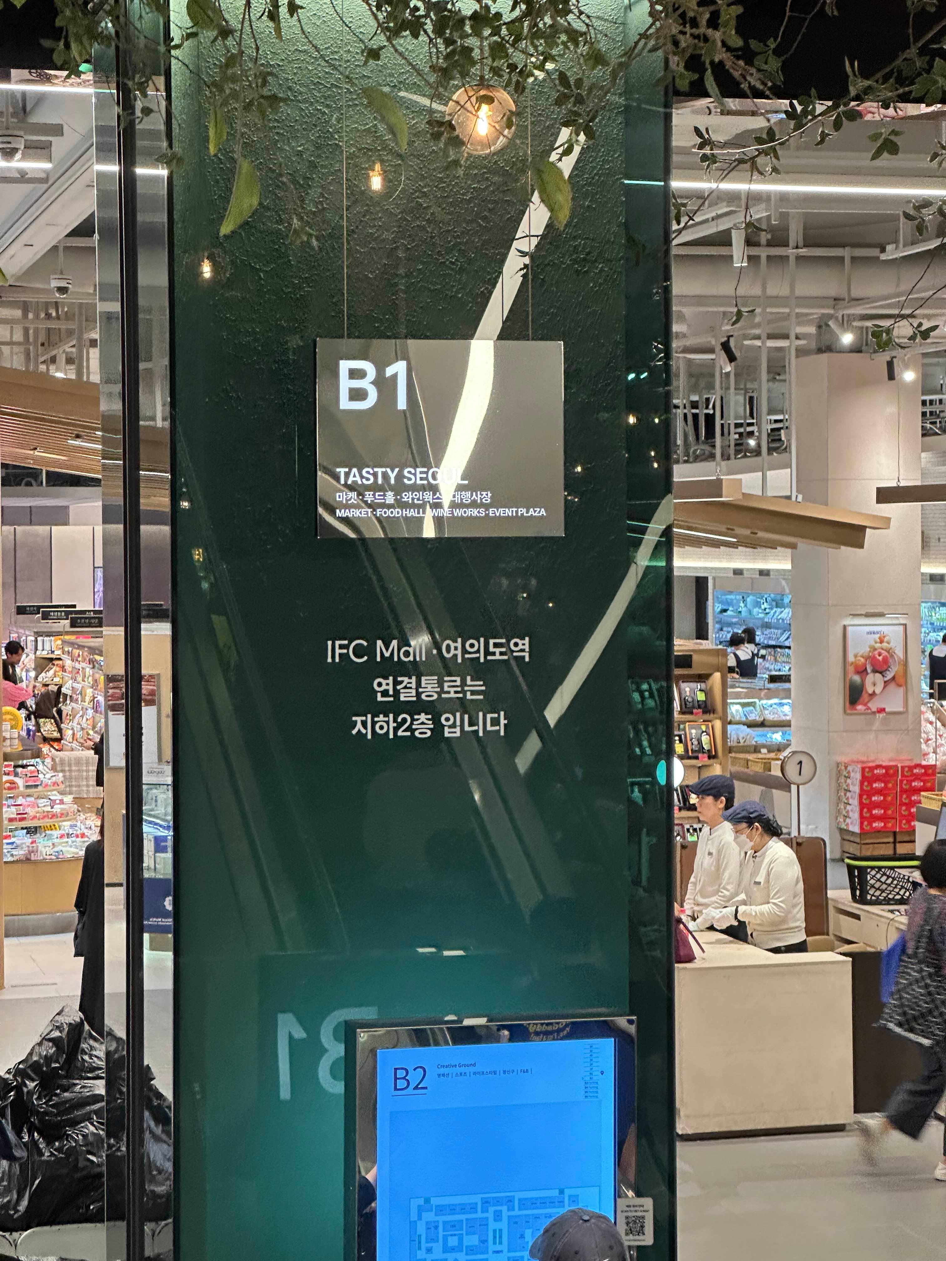 더현대에서 IFC몰과 연결해주는 통로는 B2층에 있답니다.