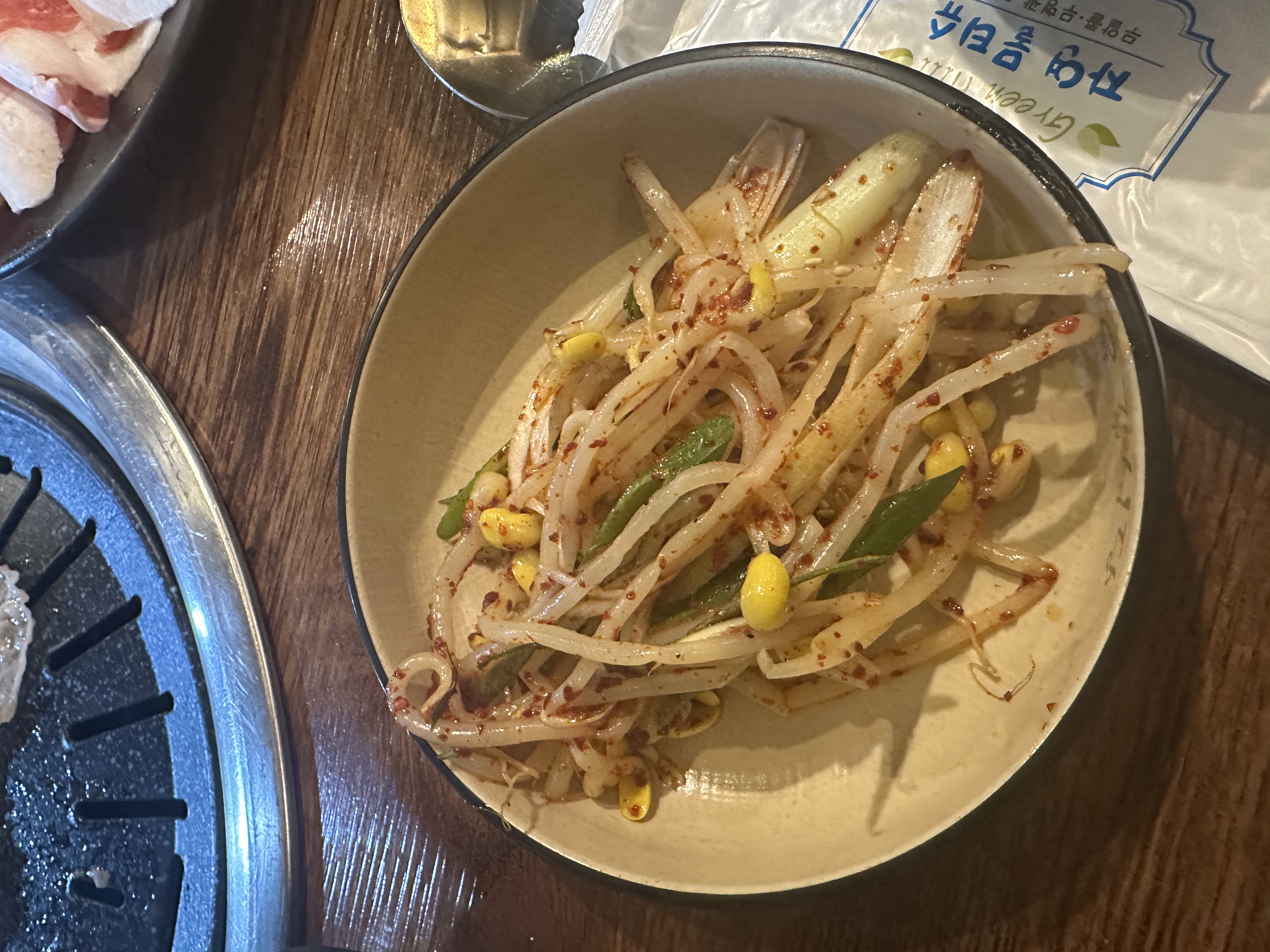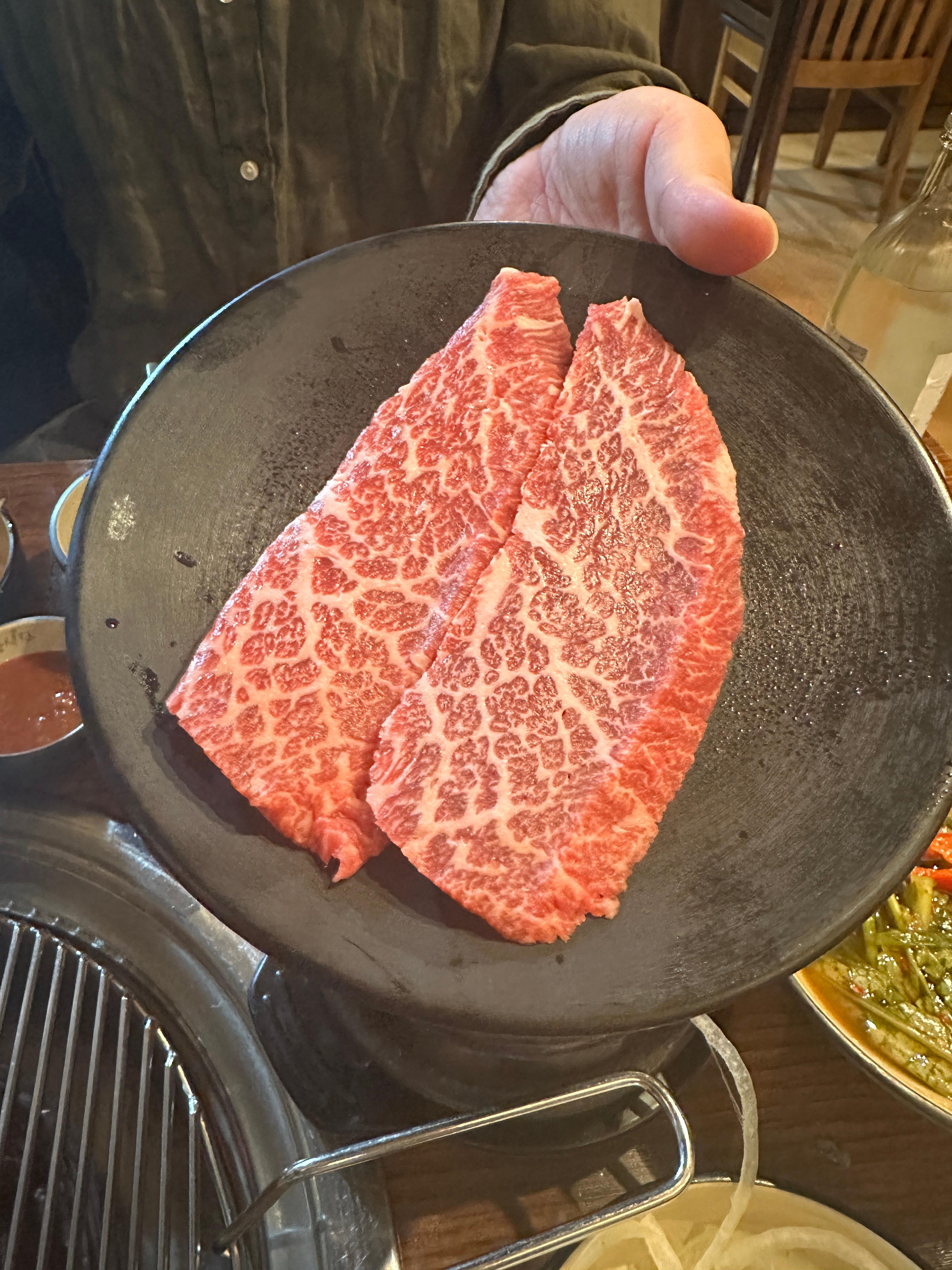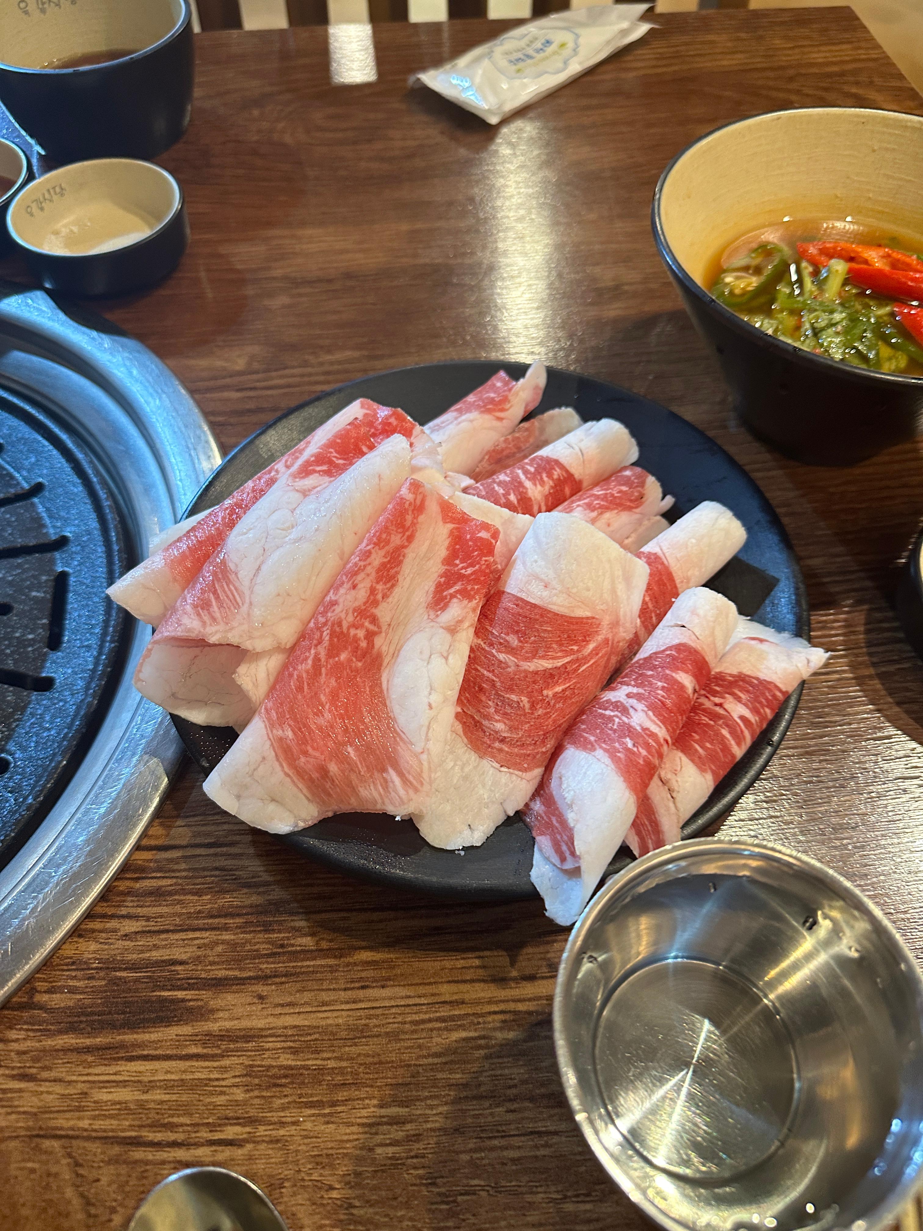 사이드로 시킨 육회도 맛있고 고기 다 먹고 식사로 멸치 국수를 주문했는데 그것도 맛있었습니다. 무한 리필 되는 계란찜도 맛있구요 계란찜도 주문하기 전에 계람찜